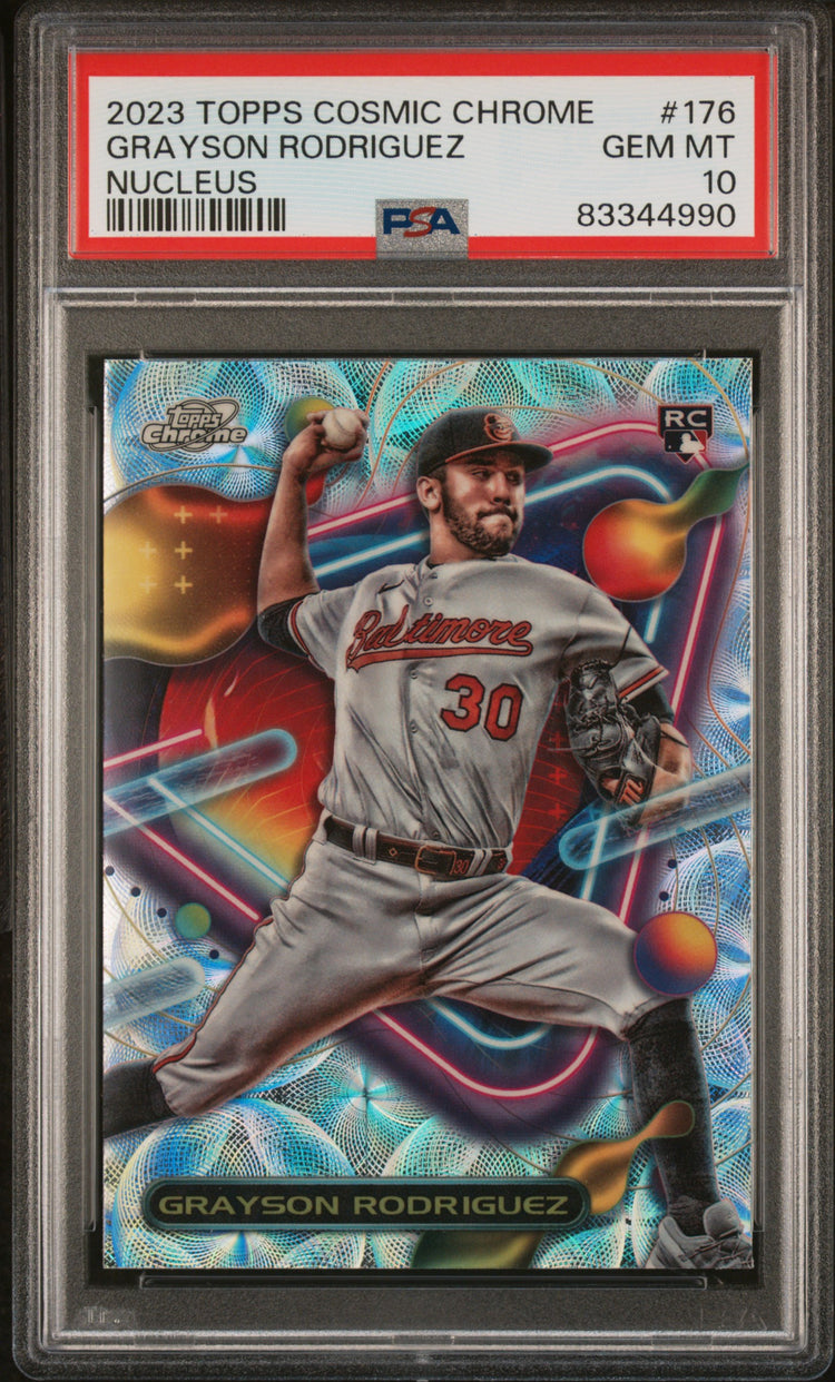 Graded 2023 Topps Cosmic Chrome Grayson Rodriguez #176 Nucleus Rookie RC Baseball Card PSA 10 Gem Mint