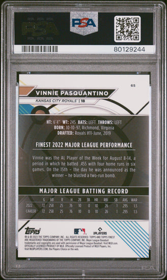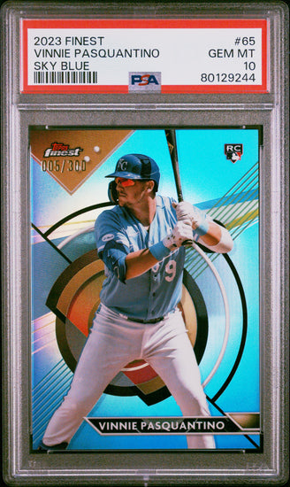 Graded 2023 Topps Finest Vinnie Pasquantino #65 Sky Blue #/300 Rookie RC Baseball Card PSA 10 Gem Mint