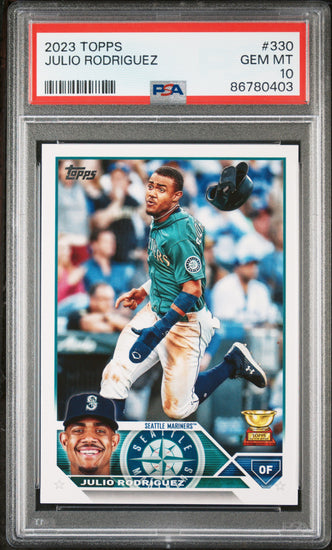 Graded 2023 Topps Julio Rodriguez #330 Rookie Cup Baseball Card PSA 10 Gem Mint