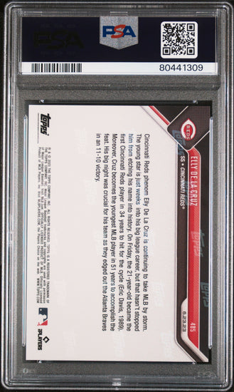 Graded 2023 Topps Now Elly De La Cruz #485 Rookie RC Baseball Card PSA 10 Gem Mint