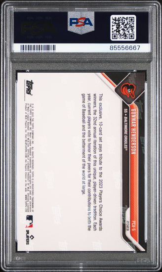 Graded 2023 Topps Now Gunnar Henderson #PCA5 Players Choice Awards Rookie RC Baseball Card PSA 10 Gem Mint