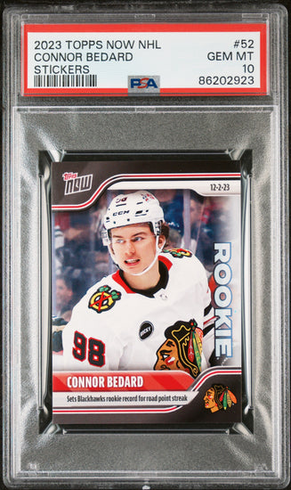 Graded 2023 Topps Now NHL Connor Bedard #52 Stickers Rookie RC Hockey Card PSA 10 Gem Mint