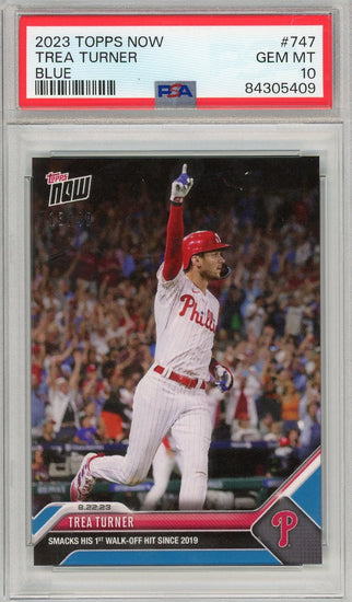 Graded 2023 Topps Now Trea Turner #747 Blue Baseball Card PSA 10 Gem Mint