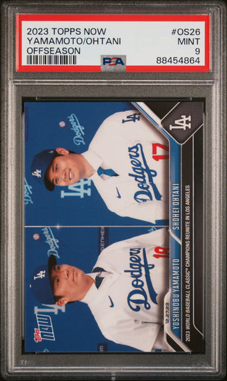 Graded 2023 Topps Now Yoshinobu Yamamoto/Shohei Ohtani #OS26 Offseason Rookie RC Baseball Card PSA 9 Mint