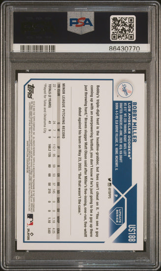 Graded 2023 Topps Update Bobby Miller #US188 Rookie RC Baseball Card PSA 10 Gem Mint