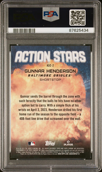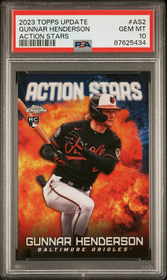 Graded 2023 Topps Update Gunnar Henderson #AS2 Action Stars Rookie RC Baseball Card PSA 10 Gem Mint