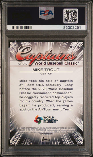 Graded 2023 Topps WBC Mike Trout #CC19 Captains of the WBC Baseball Card PSA 10 Gem Mint