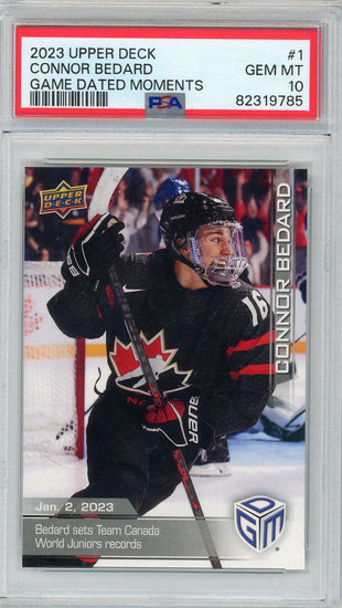 Graded 2023 Upper Deck Connor Bedard #1 Game Dated Moments Rookie RC Hockey Card PSA 10 Gem Mint