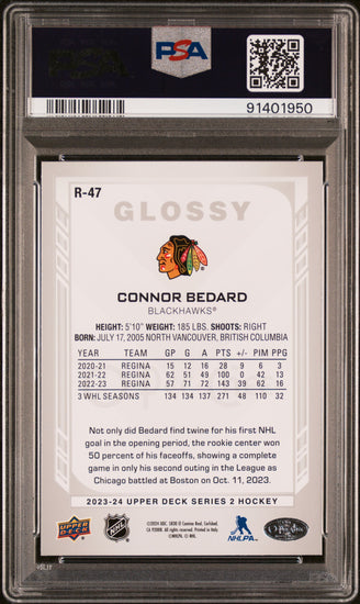 Graded 2023 Upper Deck Connor Bedard #R47 OPC Glossy Rookie RC Hockey Card PSA 10 Gem Mint