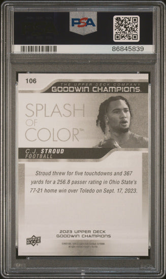 Graded 2023 Upper Deck Goodwin Champions CJ Stroud #106 Rookie RC Football Card PSA 10 Gem Mint