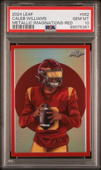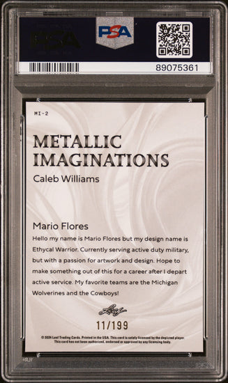Graded 2024 Leaf Caleb Williams #MI2 Metallic Imaginations Red #/199 Rookie RC Football Card PSA 10 Gem Mint