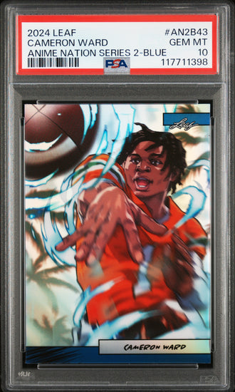 Graded 2024 Leaf Cam Ward #AN2B43 Anime Nation Series 2 Blue /75 Football Card PSA 10 Gem Mint