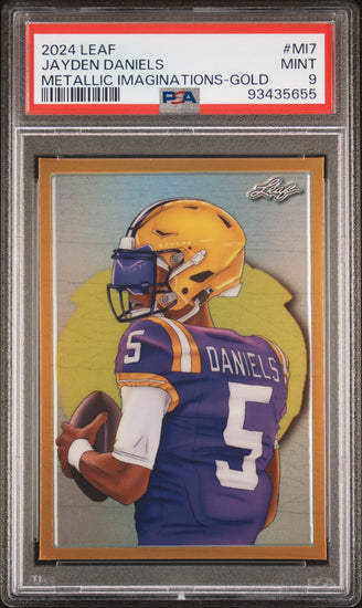 Graded 2024 Leaf Jayden Daniels #MI7 Metallic Imaginations Gold #/99 Rookie RC Football Card PSA 9 Mint