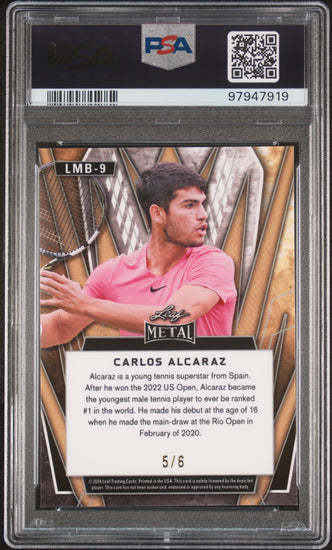 Graded 2024 Leaf NSCC Carlos Alcaraz #LMB9 Metal Pink /6 Tennis Card PSA 10 Gem Mint