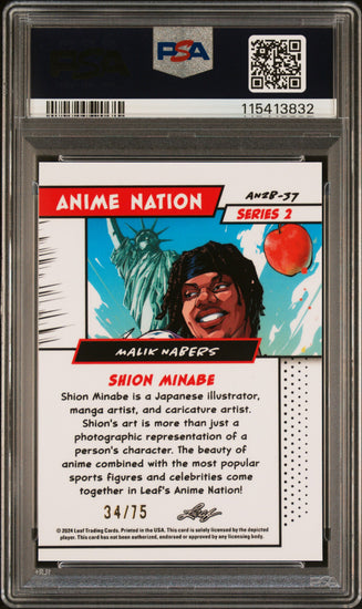 Graded 2024 Leaf Web Exclusives Malik Nabers #37 Anime Nation Series 2 Blue /75 Football Card PSA 8 Near Mint