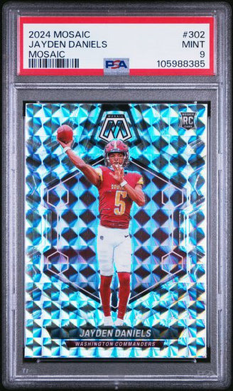 Graded 2024 Mosaic Silver Mosaic Jayden Daniels #302 Rookie RC Football Card PSA 9 Mint