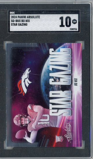 Graded 2024 Panini Absolute Bo Nix #SGBNX Star Gazing Rookie RC Football Card SGC 10 Gem Mint