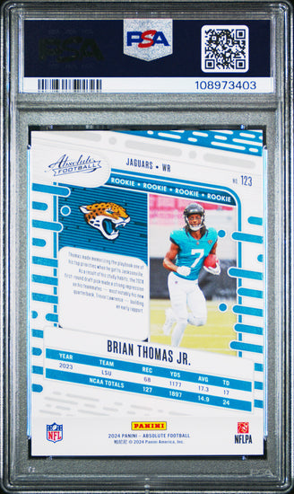 Graded 2024 Panini Absolute Brian Thomas Jr #123 Rookie RC Football Card PSA 9 Mint