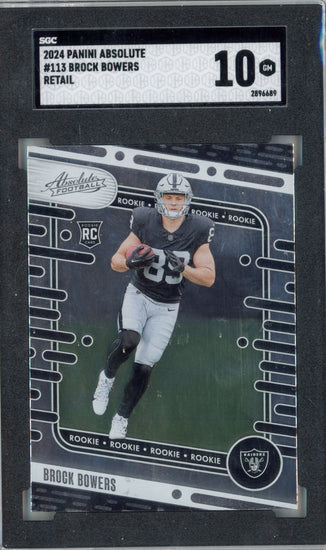 Graded 2024 Panini Absolute Brock Bowers #113 Retail Rookie RC Football Card SGC 10 Gem Mint