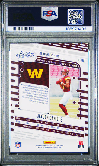 Graded 2024 Panini Absolute Jayden Daniels #102 Orange Rookie RC Football Card PSA 10 Gem Mint