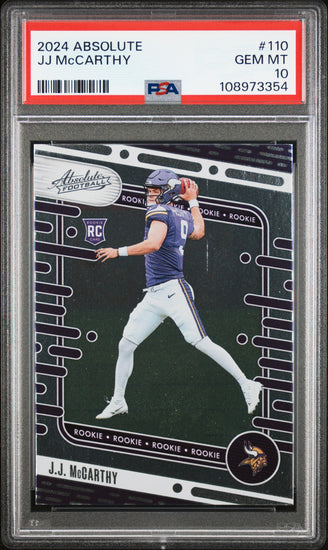 Graded 2024 Panini Absolute JJ McCarthy #110 Rookie RC Football Card PSA 10 Gem Mint
