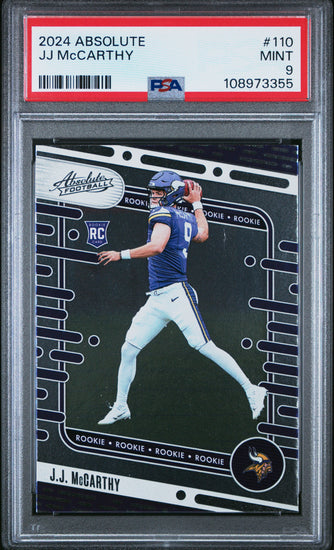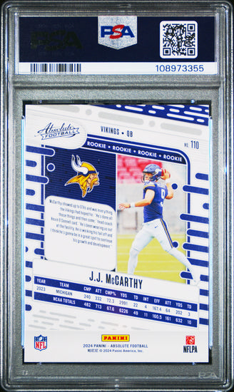 Graded 2024 Panini Absolute JJ McCarthy #110 Rookie RC Football Card PSA 9 Mint