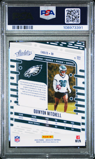 Graded 2024 Panini Absolute Quinyon Mitchell #122 Black Rookie RC Football Card PSA 10 Gem Mint