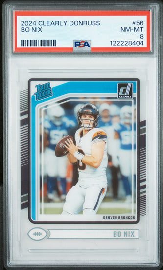 Graded 2024 Panini Clearly Donruss Bo Nix #56 Rookie RC Football Card PSA 8 Near Mint