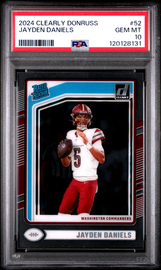 Graded 2024 Panini Clearly Donruss Jayden Daniels #52 Rookie RC Football Card PSA 10 Gem Mint
