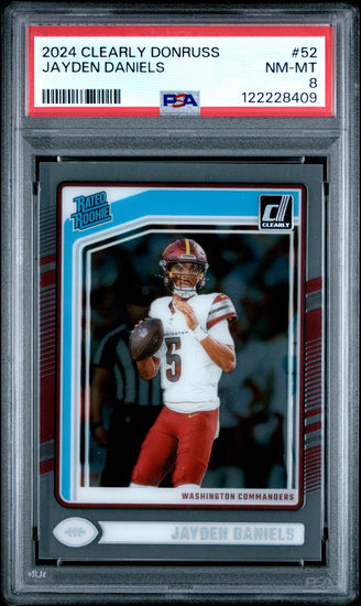 Graded 2024 Panini Clearly Donruss Jayden Daniels #52 Rookie RC Football Card PSA 8 Near Mint