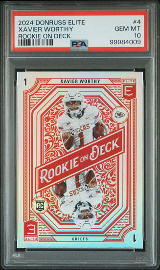 Graded 2024 Panini Donruss Elite Xavier Worthy #4 Rookie On Deck Rookie RC Football Card PSA 10 Gem Mint
