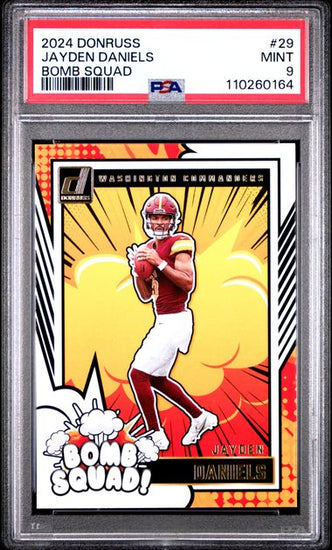 Graded 2024 Panini Donruss Jayden Daniels #29 Bomb Squad Rookie RC Football Card PSA 9 Mint