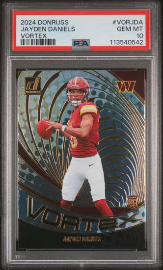 Graded 2024 Panini Donruss Jayden Daniels #VORJDA Vortex Rookie RC Football Card PSA 10 Gem Mint