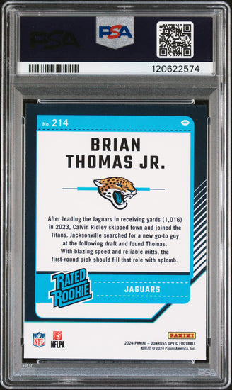 Graded 2024 Panini Donruss Optic Brian Thomas Jr. #214 Rookie RC Football Card PSA 8 Near Mint