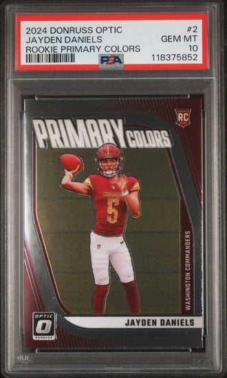 Graded 2024 Panini Donruss Optic Jayden Daniels #2 Primary Colors Rookie RC Football Card PSA 10 Gem Mint