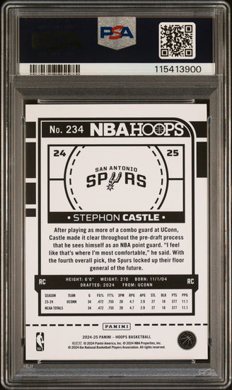 Graded 2024 Panini Hoops Stephon Castle #234 Rookie RC Basketball Card PSA 9 Mint