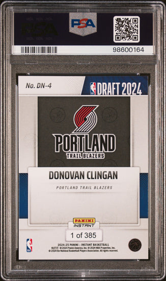 Graded 2024 Panini Instant NBA Donovan Clingan #DN4 Draft Night Rookie RC Basketball Card PSA 10 Gem Mint