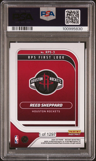Graded 2024 Panini Instant NBA Reed Sheppard #3 RPS First Look Rookie RC Basketball Card PSA 8 Near Mint