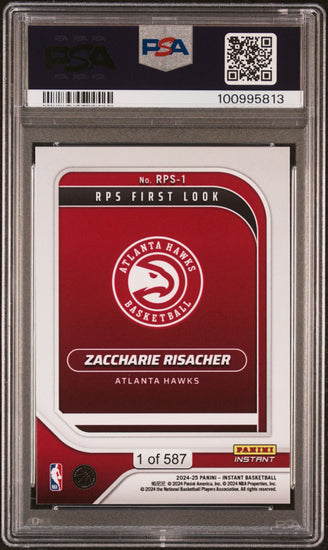 Graded 2024 Panini Instant NBA Zaccharie Risacher #1 RPS First Look Rookie RC Basketball Card PSA 10 Gem Mint