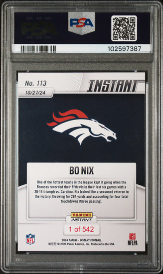 Graded 2024 Panini Instant NFL Bo Nix #113 Rookie RC Football Card PSA 9 Mint
