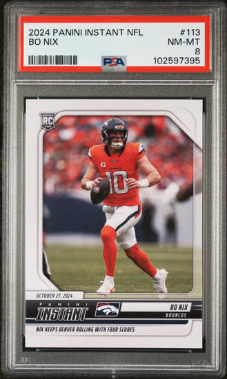 Graded 2024 Panini Instant NFL Bo Nix #113 Rookie RC Football Card PSA 8 Near Mint