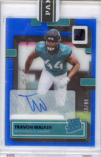 2022 Panini Clearly Donruss Travon Walker #75 Blue Auto /99 Rookie RC Football Card